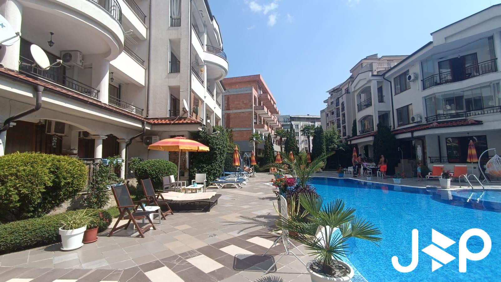 The area with developed infrastructure: cafes, restaurants, stores, water park within walking distance.