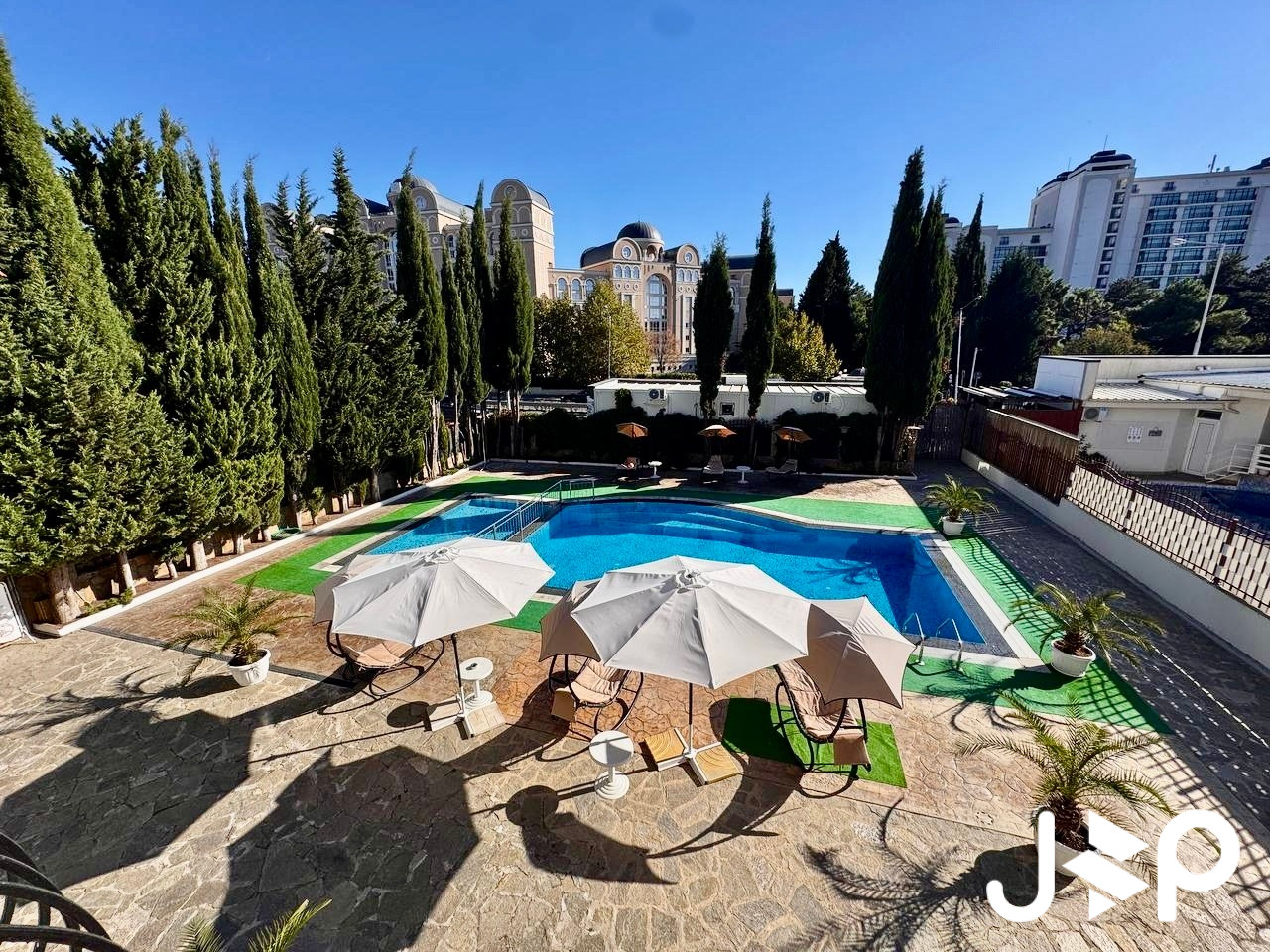 В 20 метрах от комплекса начинается хвойная роща, что обеспечивает сочетание морского и горного воздуха.