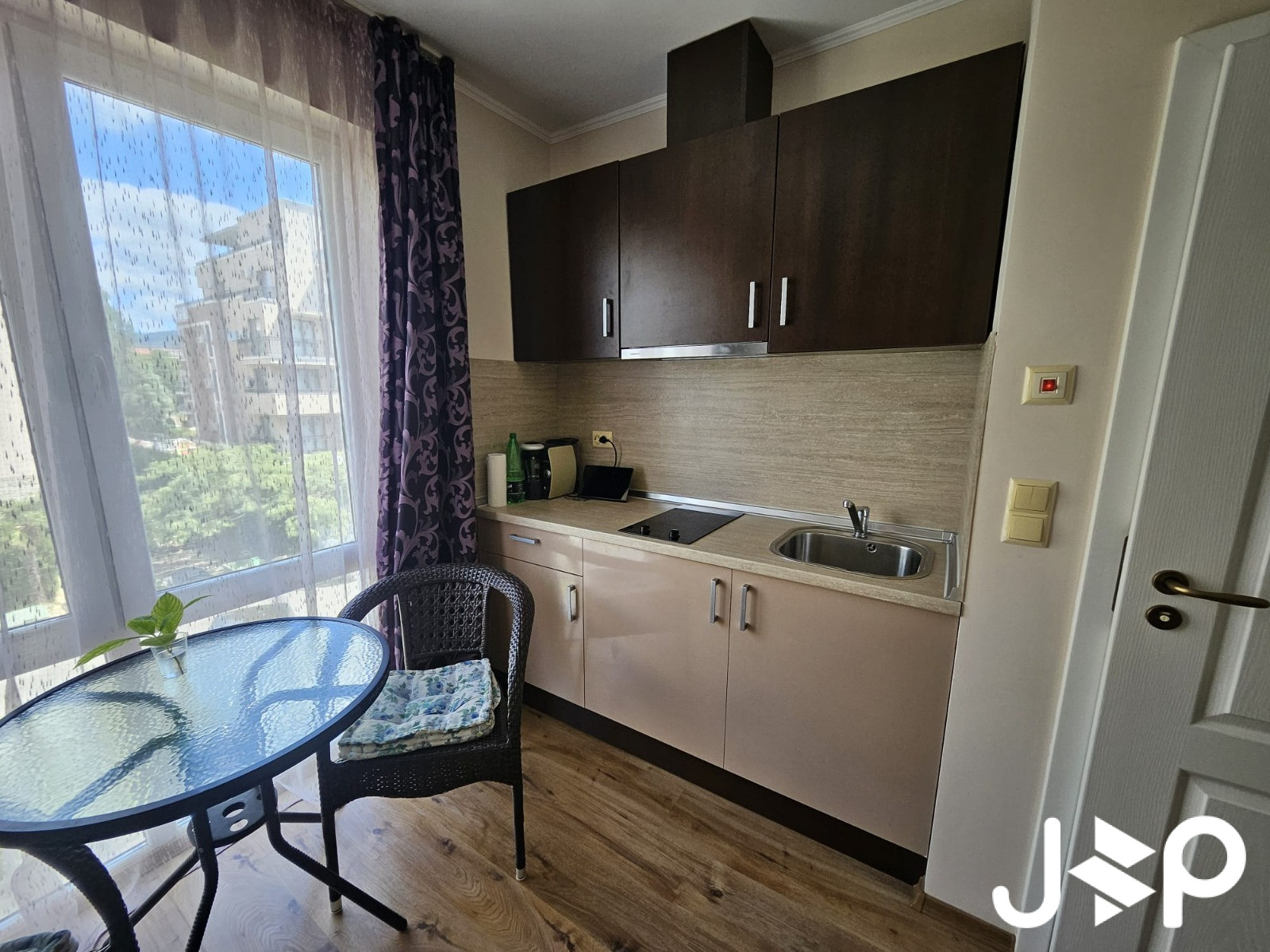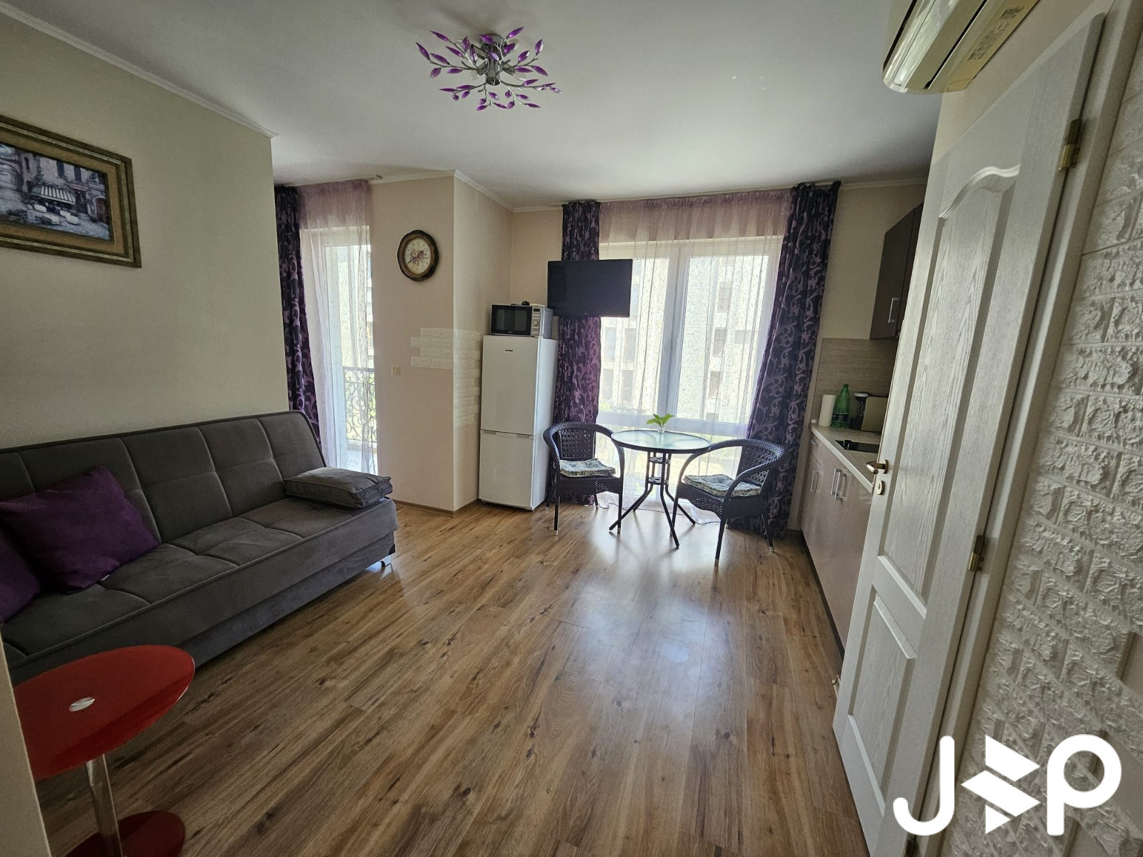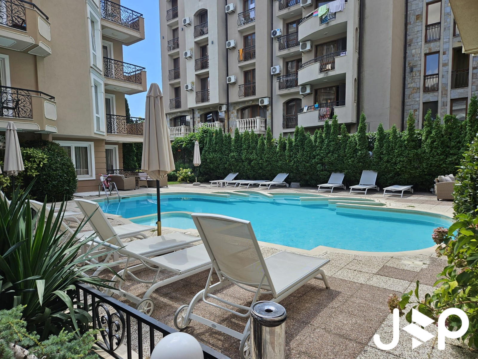 Инфраструктура комплекса: открытый плавательный бассейн с подогревом для взрослых и детей с множеством аттракций, шезлонги и зонтики, красивый сад с фонтанами, беседка и уголок для отдыха и релаксаций, большая терраса с джакузи и шатрами для собственников с видом на Святой Влас, детская площадка, СПА-центр.